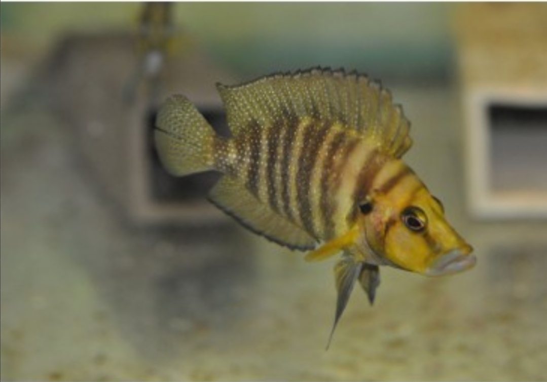 The Compressiceps Cichlid has a widespread distribution throughout Lake Tanganyika, where it is found in the shallow, precipitous rocky habitat. Here, these laterally compressed fish glide effortlessly between cracks and crevices in their ongoing search for shrimps, other small crustaceans, and fish fry. The aquarium that houses this species should be at least 5ft long, with a good amount of filtration, water movement and oxygenation. The best choice of substrate would be coral sand or aragonite, which will help to keep the water hard and alkaline. Rocks should be used to create small outcrops and plenty of caves, ensuring that there are ample visual barriers. Despite their slightly menacing appearance, Compressiceps Cichlids are usually only mildly aggressive towards one another in the confines of the home aquarium, and broken lines of sight amongst the decor will help if any problems do arise. These cichlids can be maintained in a species-only aquarium or as part of a Tanganyikan community with fish of similar size and temperament. Due to the capacious mouth and predatory nature, they are not to be housed with small fish, such as shelldwellers. If a breeding pair forms within the group, they can become much more territorially aggressive than usual, and it is often best to move them to a tank of their own at this stage. Compressiceps Cichlids are intolerant of poor water conditions, so ensure small partial water changes are carried out on a frequent basis. Several geographic colour variations are available, including 'Black Pearl', 'Gold Head', 'Chaitika Orange', 'Kalambo', 'Kigoma Red', 'Mutondwe Fire Fin', and 'Nangu Black'.